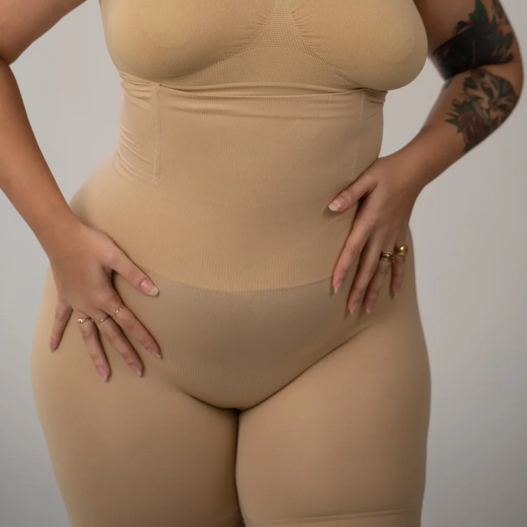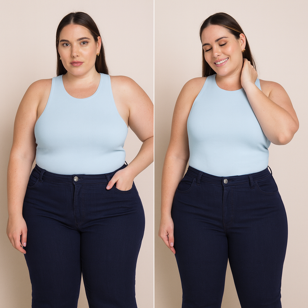 A modelagem anatômica se ajusta perfeitamente às suas curvas, criando um visual harmonioso e natural.